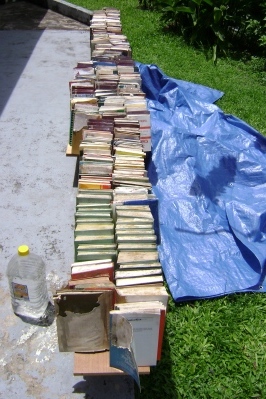 The books which are sitting out in the sun will never be in our house again