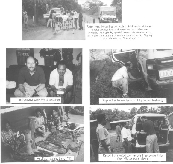 We booked a special flight with Solomon Airlines which allowed us to fly thru Honiara (Solomon Islands) and then on into Papua New Guinea. We tried to stop over in Port Vila also but would have had to spend 7 days which we did not have at the present time. So we stopped over in Honiara for two days where we were able to visit with several of the students we have on World Bible School courses. There are a number of Christians in the Solomon Islands but they live on islands several days boat ride away. Two of the students are security guards at the Honiara Hotel where we stayed. We are praying that next trip we will be able to get out to the islands and visit with the brethren. We see a definite need for leadership training and the need to get at least one of the brethren trained here in New Zealand to help the local church to achieve maturity in the Lord. (We left New Zealand with a temperature of 32 and landed in Honiara with a temperature of 85.) Kathy and I talked with government offices about starting a business there but decided that it is not likely in the near future. When we were clearing customs they had a fight in the customs hall and the next day when we went to the newspaper office to check if our advertisement had been printed there was a guy in the office there trying to get the editor to fight with him over a difference of opinion in an editorial - shades of Papua New Guinea.